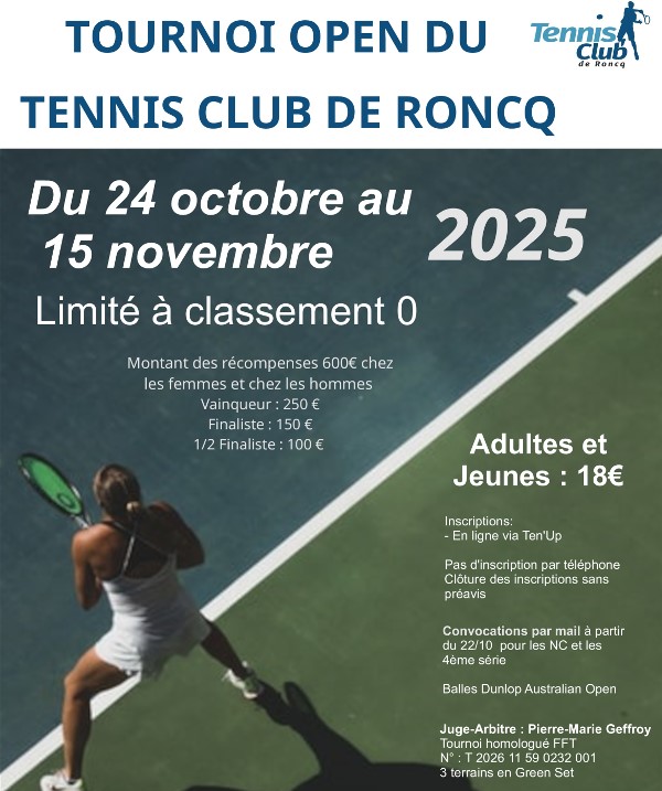 Adresse du site TCR : hhtp://www.tennisroncq.fr